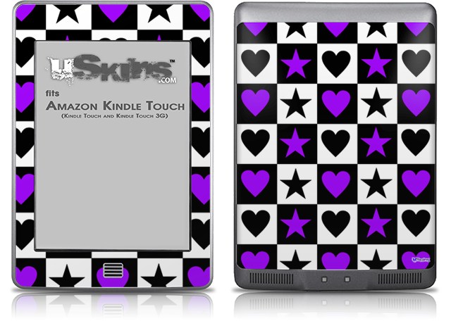 Purple Hearts And Stars - Decal Style Skin (fits Amazon Kindle Touch Skin)
