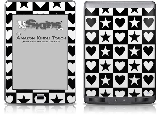 Hearts And Stars Black and White - Decal Style Skin (fits Amazon Kindle Touch Skin)
