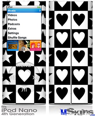 iPod Nano 4G Skin - Hearts And Stars Black and White