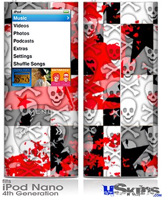 iPod Nano 4G Skin - Checker Skull Splatter Red