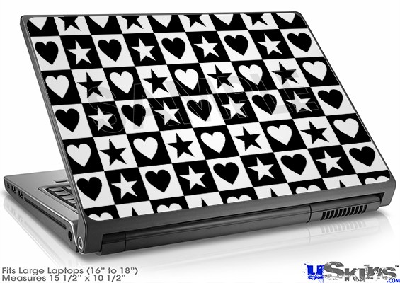 Laptop Skin (Large) - Hearts And Stars Black and White