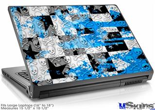 Laptop Skin (Large) - Checker Skull Splatter Blue