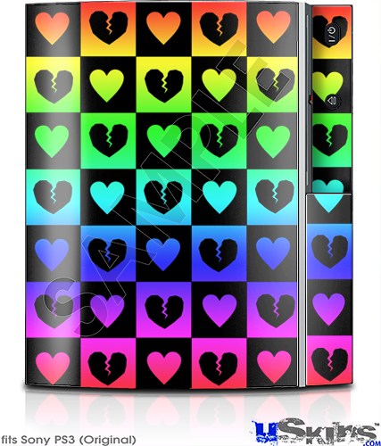 Sony PS3 Skin - Love Heart Checkers Rainbow