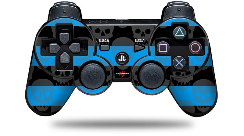 Sony PS3 Controller Decal Style Skin - Skull Stripes Blue (CONTROLLER NOT INCLUDED)