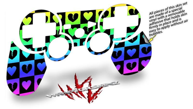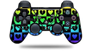 Sony PS3 Controller Decal Style Skin - Love Heart Checkers Rainbow (CONTROLLER NOT INCLUDED)