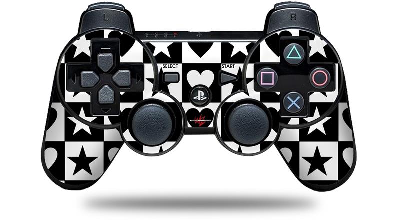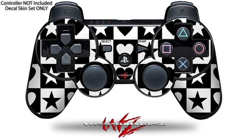 Sony PS3 Controller Decal Style Skin - Hearts And Stars Black and White (CONTROLLER NOT INCLUDED)