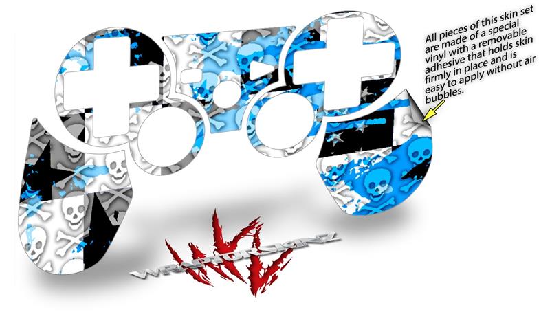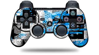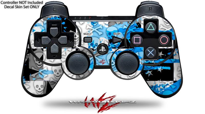 Sony PS3 Controller Decal Style Skin - Checker Skull Splatter Blue (CONTROLLER NOT INCLUDED)
