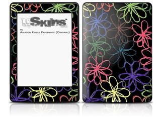 Kearas Flowers on Black - Decal Style Skin fits Amazon Kindle Paperwhite (Original)