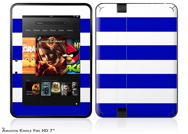 Psycho Stripes Blue and White Decal Style Skin fits 2012 Amazon Kindle Fire HD 7 inch