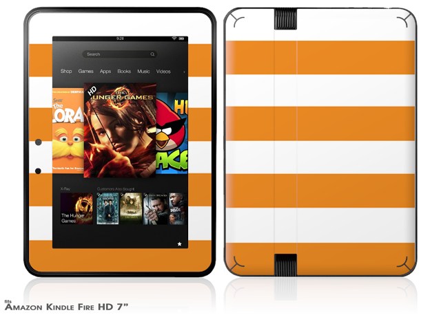 Psycho Stripes Orange and White Decal Style Skin fits 2012 Amazon Kindle Fire HD 7 inch