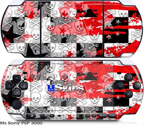 Sony PSP 3000 Skin - Checker Skull Splatter Red