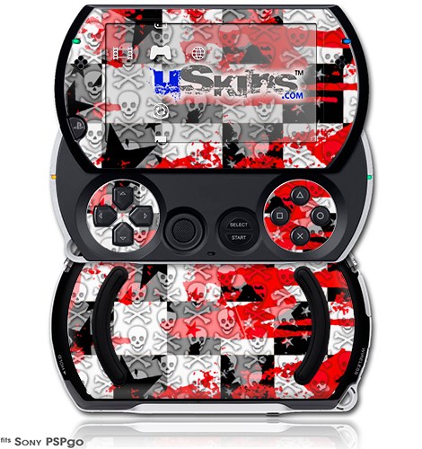 Checker Skull Splatter Red - Decal Style Skins (fits Sony PSPgo)