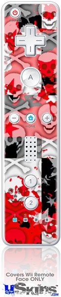 Wii Remote Controller Face ONLY Skin - Checker Skull Splatter Red