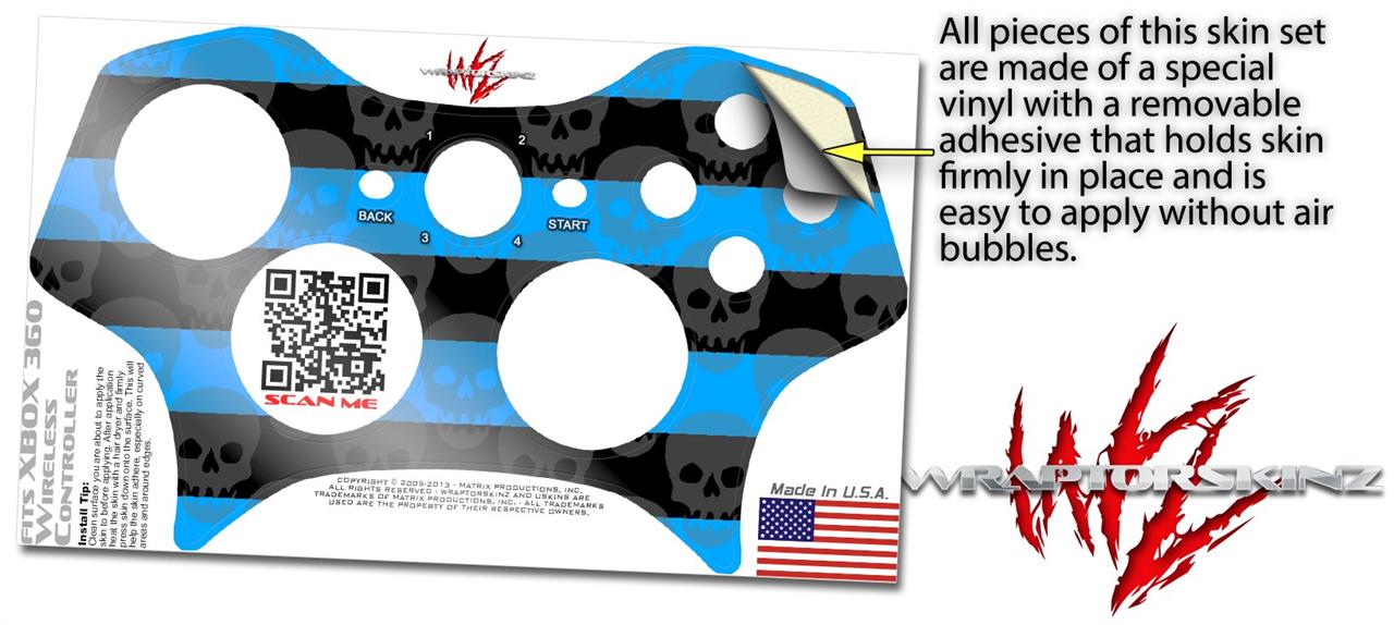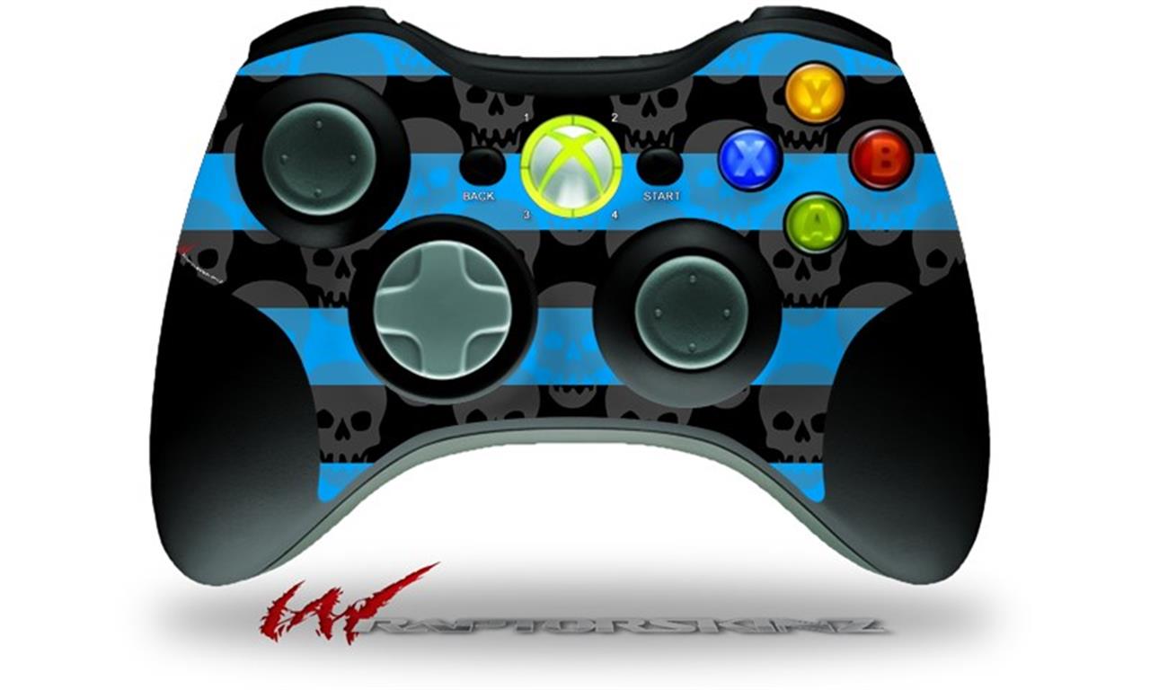 XBOX 360 Wireless Controller Decal Style Skin - Skull Stripes Blue (CONTROLLER NOT INCLUDED)
