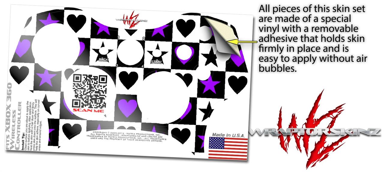 XBOX 360 Wireless Controller Decal Style Skin - Purple Hearts And Stars (CONTROLLER NOT INCLUDED)
