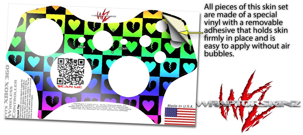 XBOX 360 Wireless Controller Decal Style Skin - Love Heart Checkers Rainbow (CONTROLLER NOT INCLUDED)