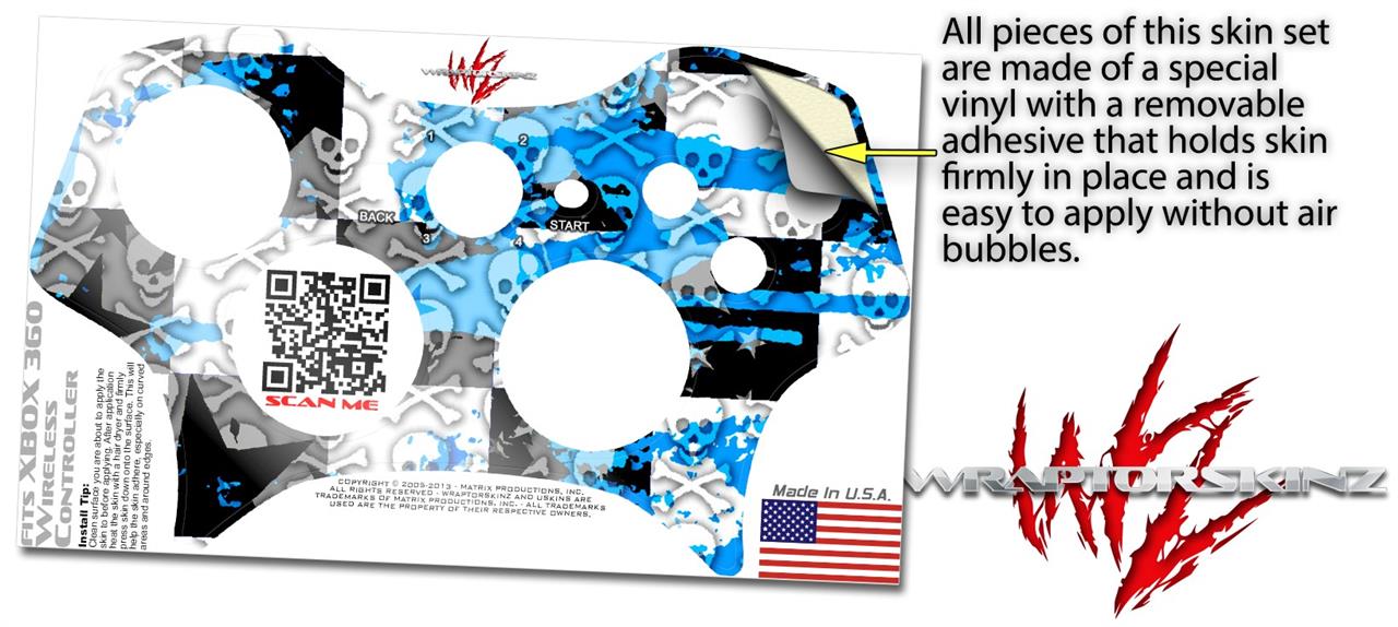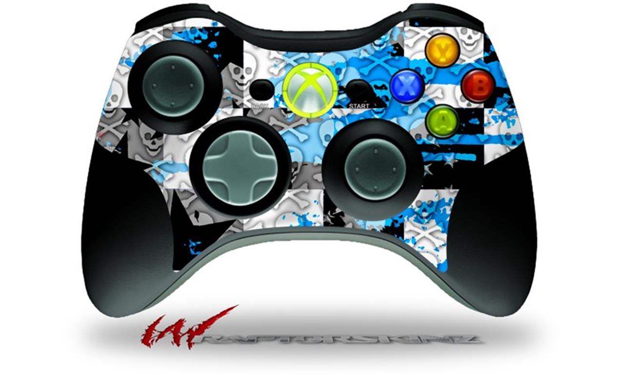 XBOX 360 Wireless Controller Decal Style Skin - Checker Skull Splatter Blue (CONTROLLER NOT INCLUDED)