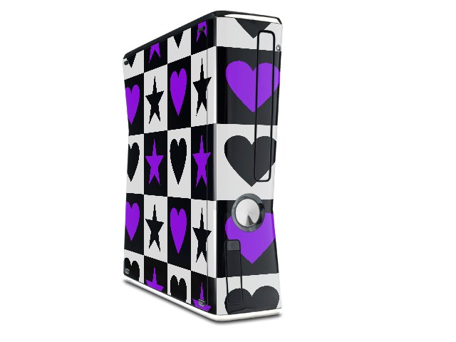 Purple Hearts And Stars Decal Style Skin for XBOX 360 Slim Vertical