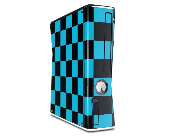 Checkers Blue Decal Style Skin for XBOX 360 Slim Vertical