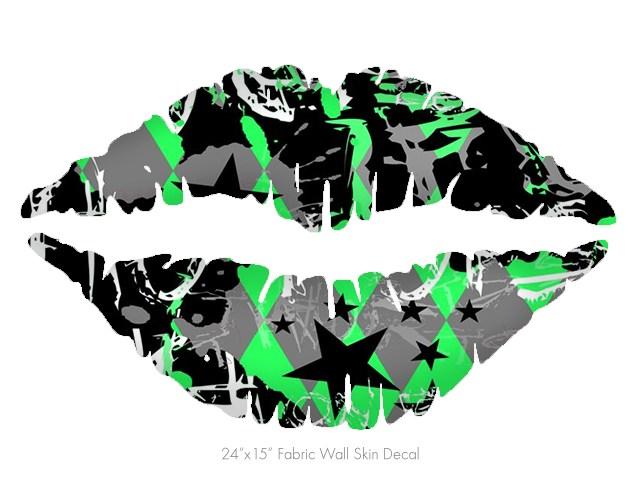SceneKid Green - Kissing Lips Fabric Wall Skin Decal measures 24x15 inches