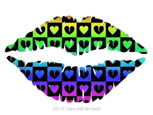 Love Heart Checkers Rainbow - Kissing Lips Fabric Wall Skin Decal measures 24x15 inches
