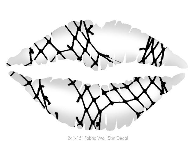 Ripped Fishnets - Kissing Lips Fabric Wall Skin Decal measures 24x15 inches