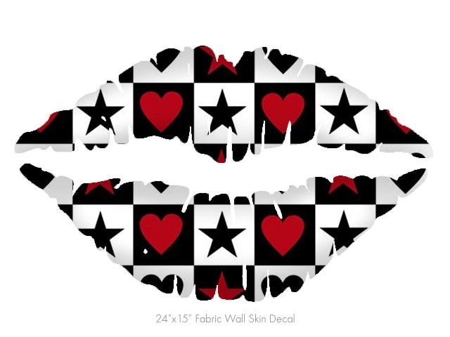 Hearts and Stars Red - Kissing Lips Fabric Wall Skin Decal measures 24x15 inches