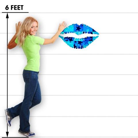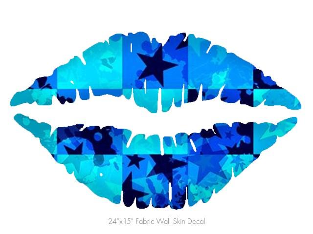 Blue Star Checkers - Kissing Lips Fabric Wall Skin Decal measures 24x15 inches