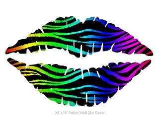Rainbow Zebra - Kissing Lips Fabric Wall Skin Decal measures 24x15 inches