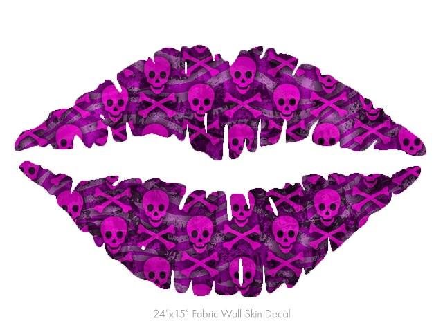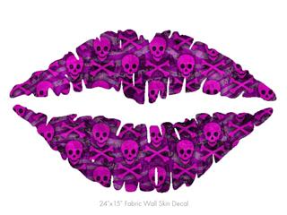 Pink Skull Bones - Kissing Lips Fabric Wall Skin Decal measures 24x15 inches