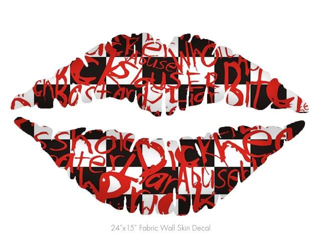 Insults - Kissing Lips Fabric Wall Skin Decal measures 24x15 inches