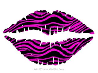Pink Zebra - Kissing Lips Fabric Wall Skin Decal measures 24x15 inches