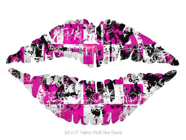 Pink Graffiti - Kissing Lips Fabric Wall Skin Decal measures 24x15 inches