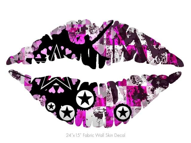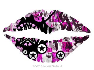 Pink Star Splatter - Kissing Lips Fabric Wall Skin Decal measures 24x15 inches