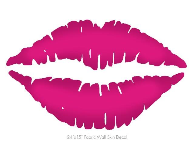 Solids Collection Hot Pink (Fuchsia) - Kissing Lips Fabric Wall Skin Decal measures 24x15 inches