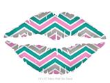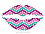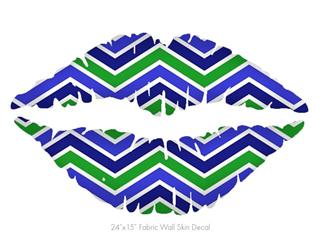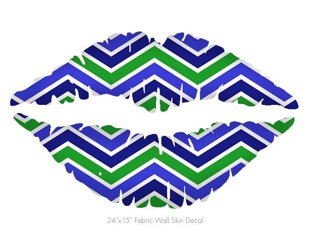 Zig Zag Blue Green - Kissing Lips Fabric Wall Skin Decal measures 24x15 inches