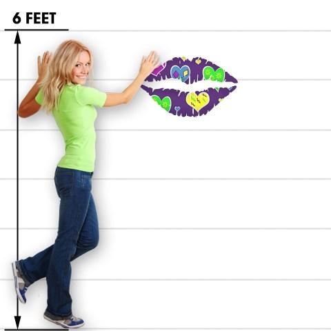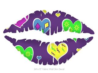 Crazy Hearts - Kissing Lips Fabric Wall Skin Decal measures 24x15 inches