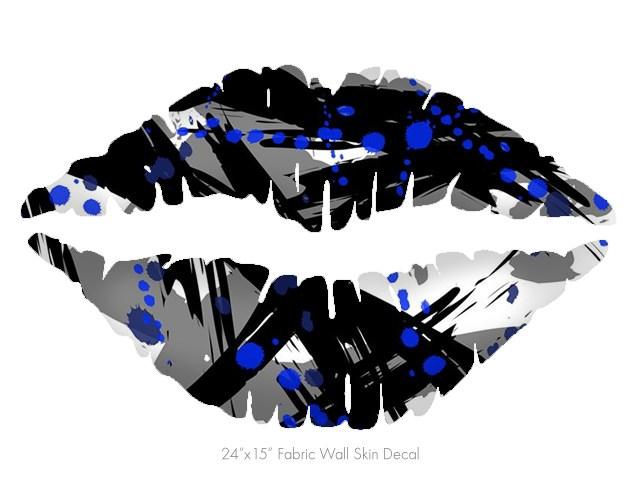 Abstract 02 Blue - Kissing Lips Fabric Wall Skin Decal measures 24x15 inches