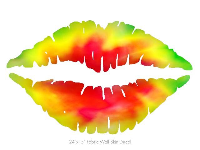 Tie Dye - Kissing Lips Fabric Wall Skin Decal measures 24x15 inches