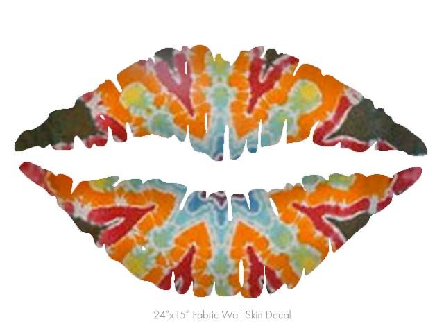Tie Dye Star 103 - Kissing Lips Fabric Wall Skin Decal measures 24x15 inches
