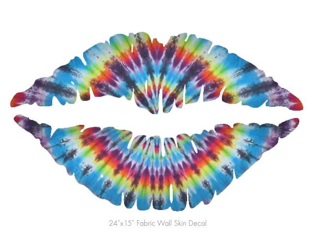 Tie Dye Swirl 100 - Kissing Lips Fabric Wall Skin Decal measures 24x15 inches