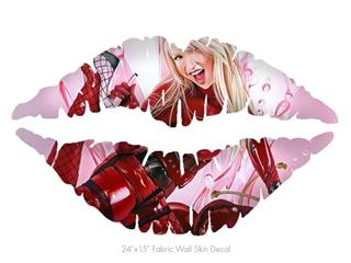Cherry Bomb - Kissing Lips Fabric Wall Skin Decal measures 24x15 inches