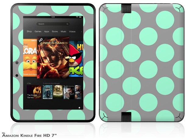 Kearas Polka Dots Mint And Gray Decal Style Skin fits 2012 Amazon Kindle Fire HD 7 inch