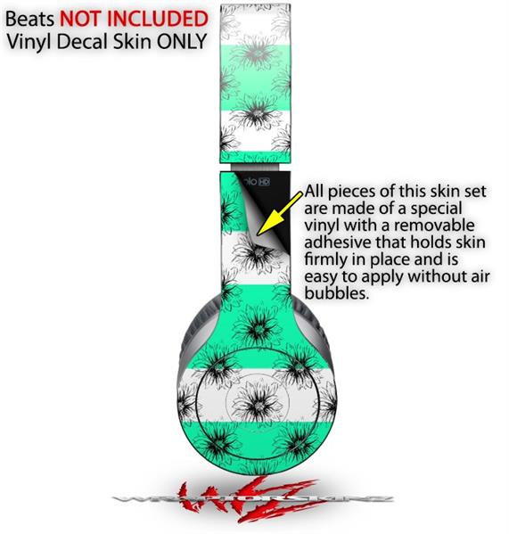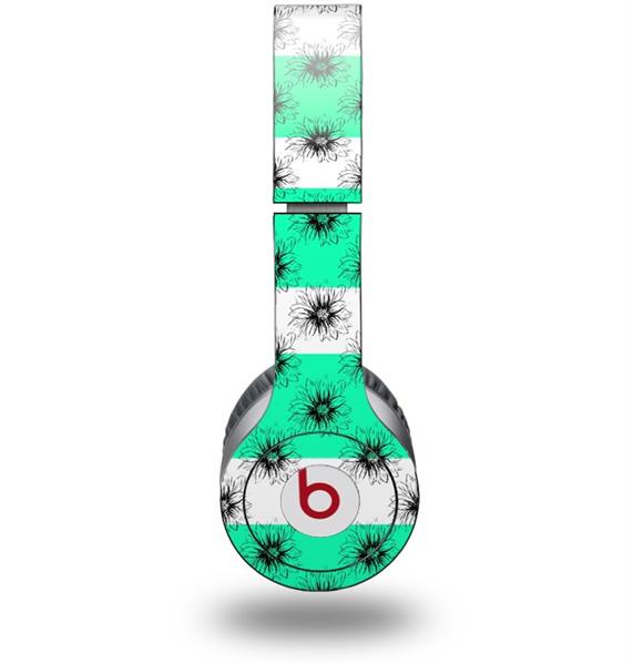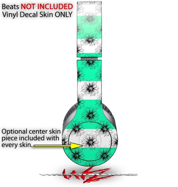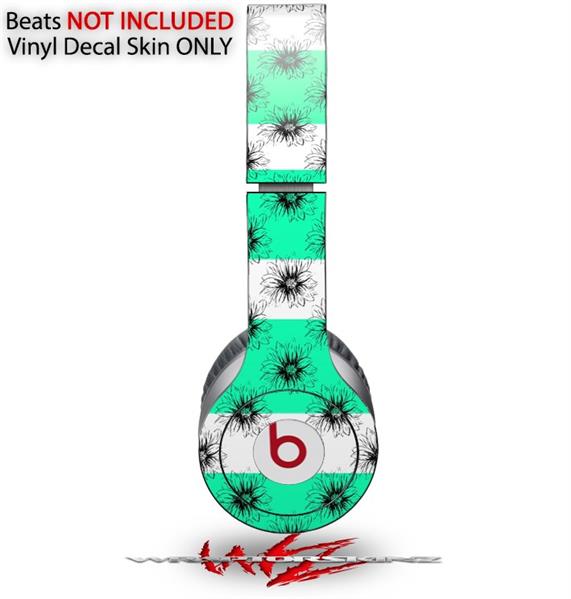WraptorSkinz Skin Decal Wrap compatible with Beats Solo HD (Original) Kearas Daisies Stripe SeaFoam (HEADPHONES NOT INCLUDED)