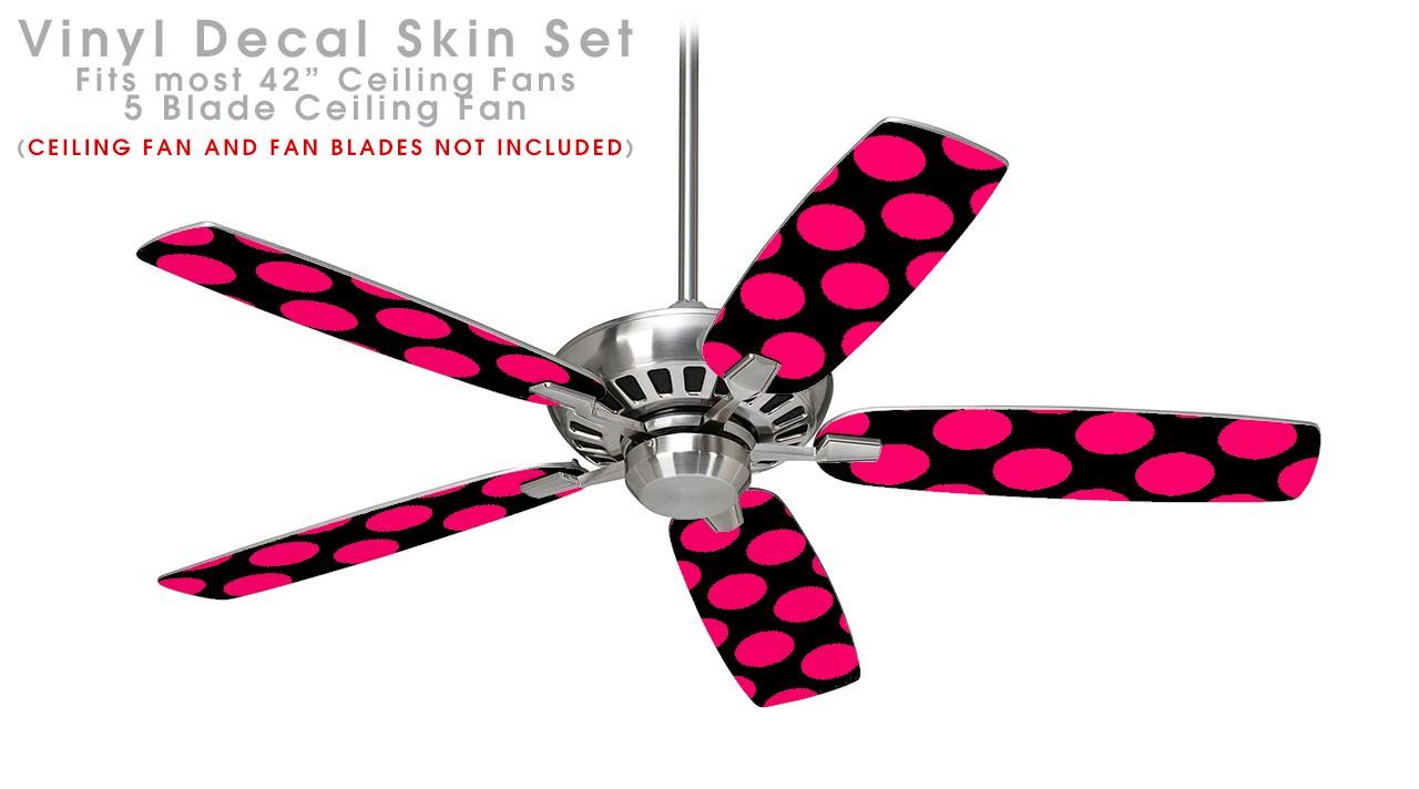 Kearas Polka Dots Pink On Black - Ceiling Fan Skin Kit fits most 42 inch fans (FAN and BLADES SOLD SEPARATELY)
