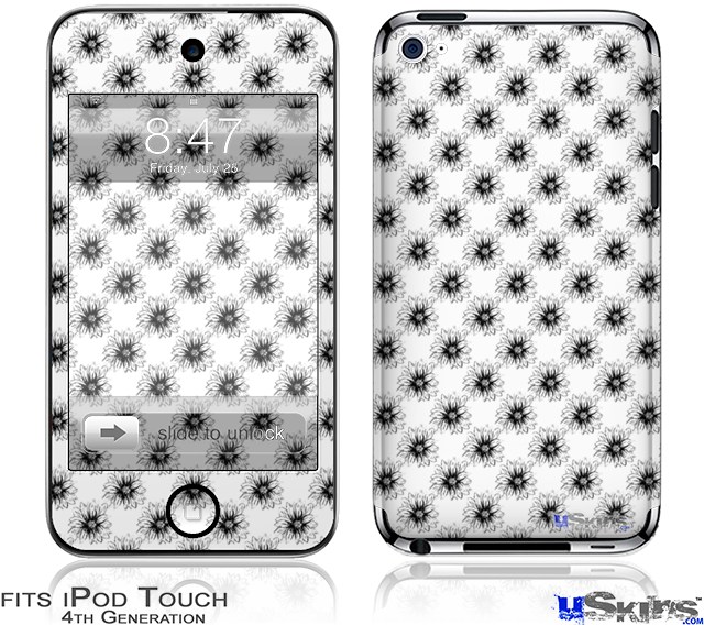iPod Touch 4G Decal Style Vinyl Skin - Kearas Daisies Black on White