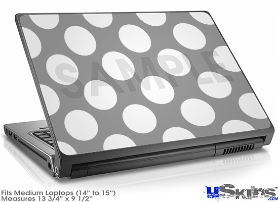 Laptop Skin (Medium) - Kearas Polka Dots Whtie On Gray