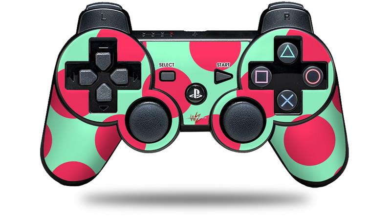 Sony PS3 Controller Decal Style Skin - Kearas Polka Dots Pink And Blue (CONTROLLER NOT INCLUDED)
