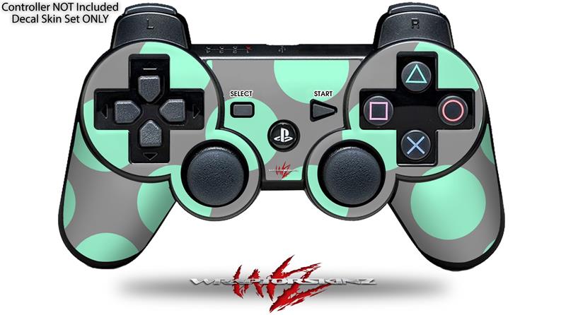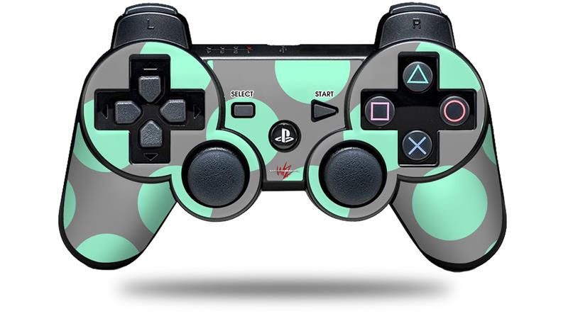 Sony PS3 Controller Decal Style Skin - Kearas Polka Dots Mint And Gray (CONTROLLER NOT INCLUDED)