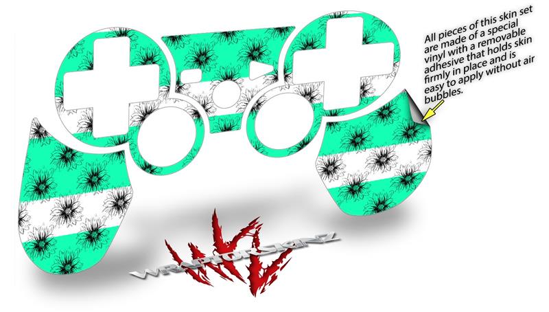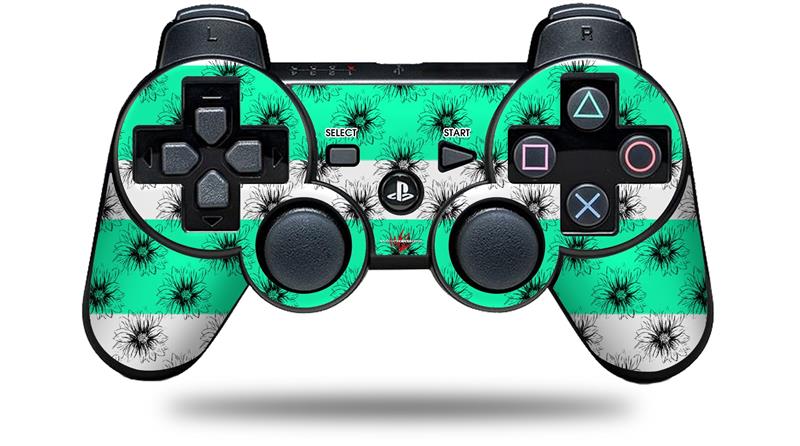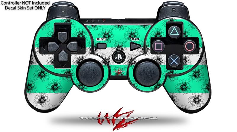 Sony PS3 Controller Decal Style Skin - Kearas Daisies Stripe Sea Foam (CONTROLLER NOT INCLUDED)